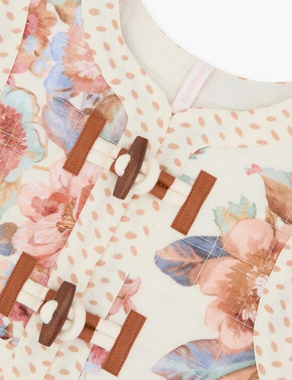 The Awaken Kids Quilted Vest in Spliced from Our Resort Swim 2026 Collection. A Cotton Kids Vest Featuring a Mandarin Collar, Toggle Buttons and Quilted Design.