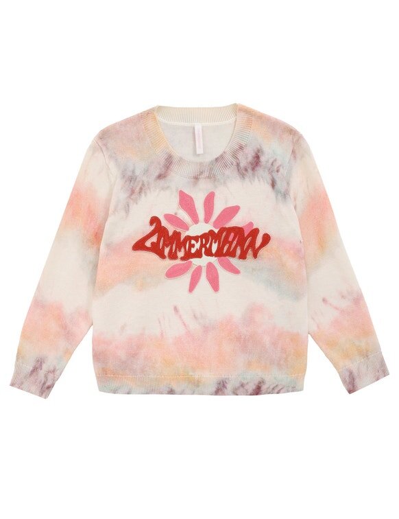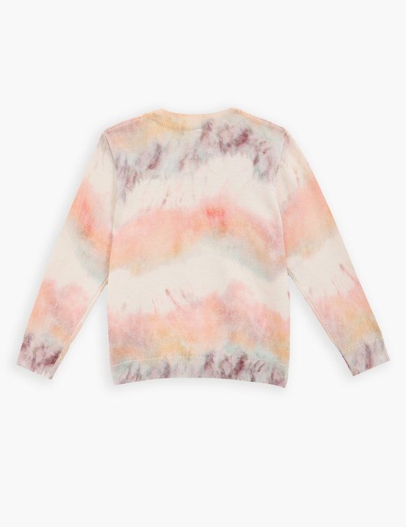The Daylight Kids Knit Tie Dye Jumper in Multi Print from Our Resort Swim 2026 Collection. A Kids Cotton Jumper Featuring a Round Neckline and Ribbed Trim.
