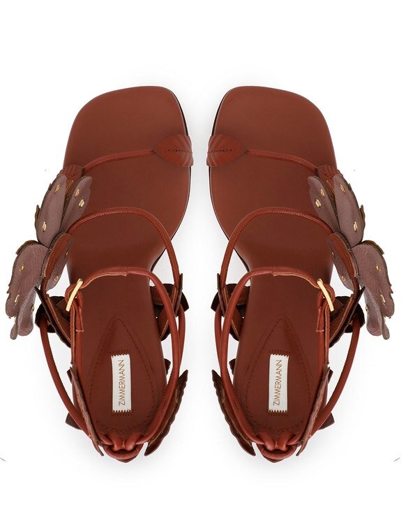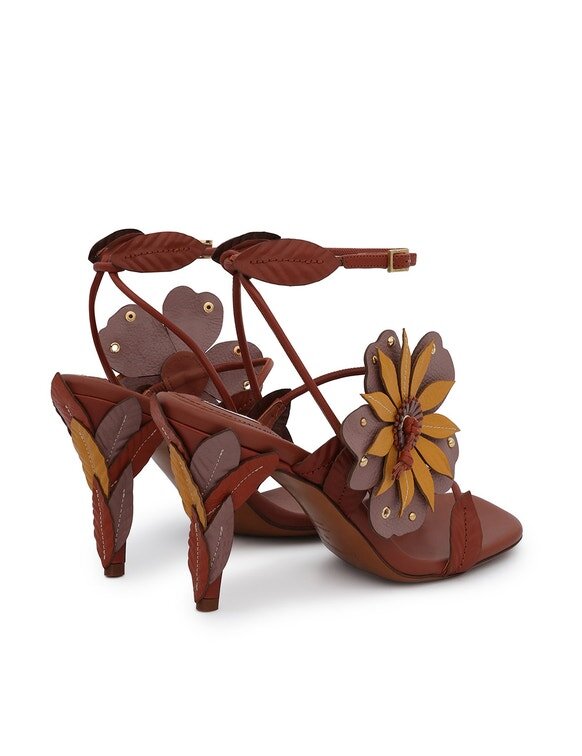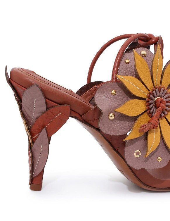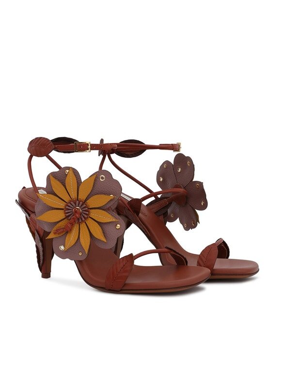 The Brightside Sandal 85 in Siena from Our Spring 2026 Collection, Kindred Spirit. Crafted in Italy, Belara Features Custom-Molded Leather Flowers and Fine Strapping for a Delicate Yet Refined Touch.