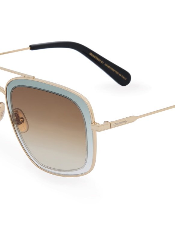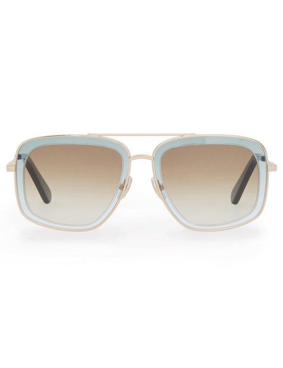 The Brisa Navigator in Moss from Our Cruise 2026 Collection, Twisted Romance. A Navigator-Style Squared Metal Frame Featuring Gradient Coloured Lenses and Acetate Temple Tips.