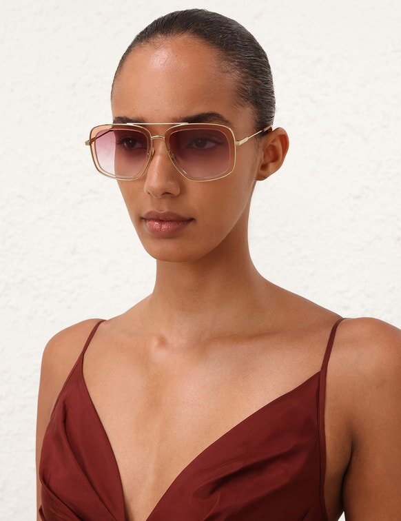 The Brisa Navigator in Purple from Our Cruise 2026 Collection, Twisted Romance. A Navigator-Style Squared Metal Frame Featuring Gradient Coloured Lenses and Acetate Temple Tips.