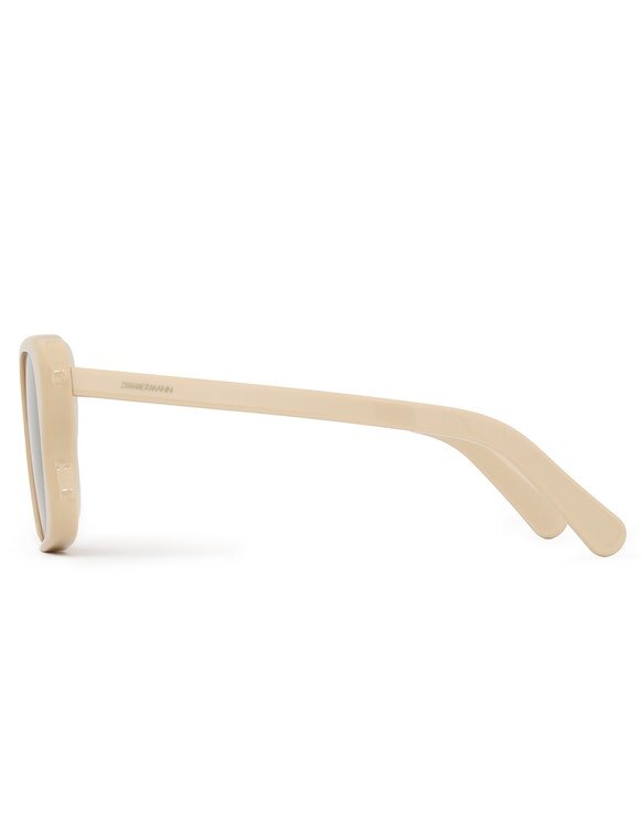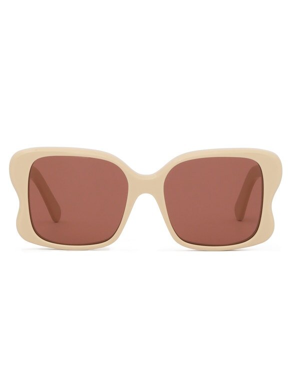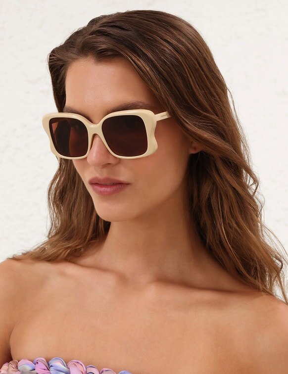 The Goldie Oversize in Cream from Our Spring 2025 Collection, Illumination. An Acetate Oversized Square Frame Featuring Solid Black Lenses and Signature Temples with Custom Wire Core for Strength and Durability.