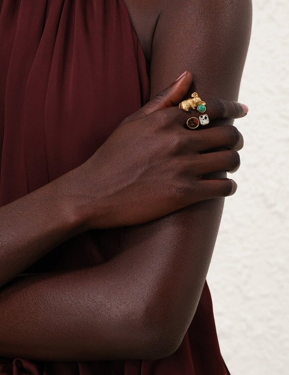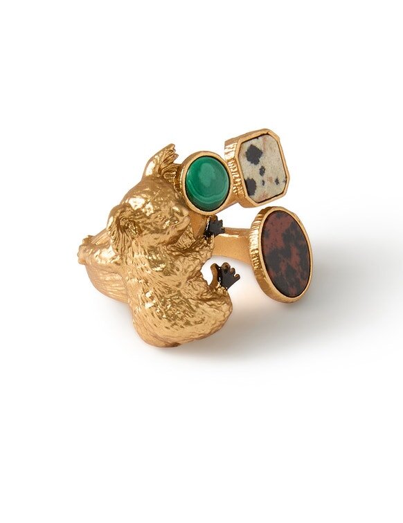 The Mira Ring in Gold/Multi from Our Spring 2026 Collection, Kindred Spirit. A Gold Plated Statement Ring Featuring an Intricate Koala Inspired Design.
