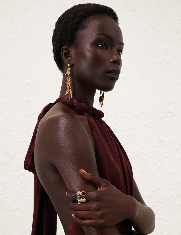 Style the Mira Ring with the Mira Bracelet, Mira Necklace and Mira Hoops for Your Next Special Occasion.Wear This Style with the Mira Necklace, Mira Bracelet and Mira Single Chain Ear Cuff by ZimmermannSize & Care