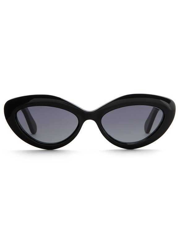 The Miranda Cateye in Black from Our Cruise 2026 Collection, Twisted Romance. An Acetate Cateye Frame Featuring Gradient Coloured Lenses.