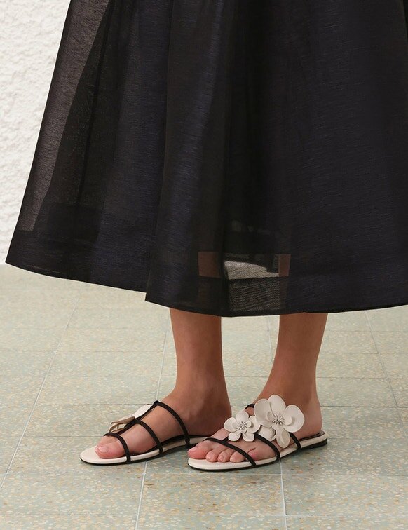 The Orchid Slide in Macadamia from Our Fall 2025 Collection, Hypnotic. Crafted in Italy, Orchid Adds Effortless Sophistication to Any Look with Fine Strapping and Custom-Moulded Leather Orchids.