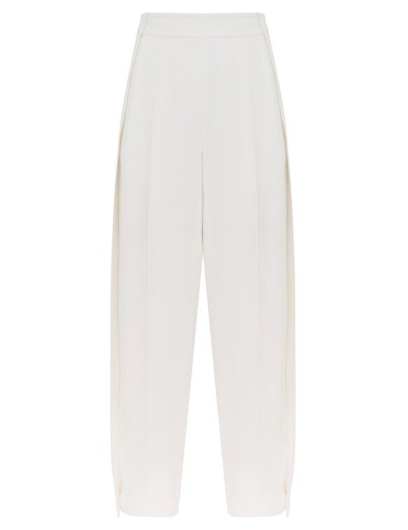 The Luna Twill Barrel Pant Appeared in Look 30 of the Spring 2026 Runway. Style the Pant with the Luna Twill Blazer, Luna Plunge Bodysuit, Whiteley Cuff, Cloud 91 Medium Clutch, Lumi Sandal, and Olley Mask to Complete the Runway Look.Size & Care