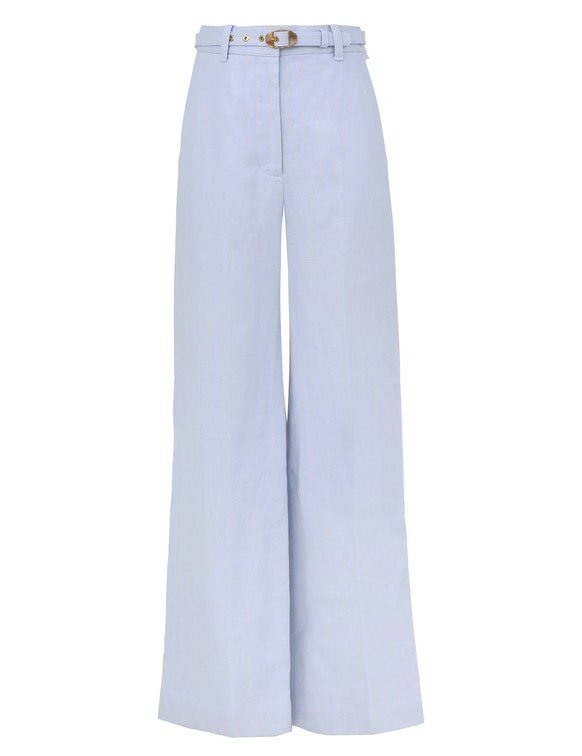 Style the Rebellion Pinstripe Pant with the Rebellion Pinstripe Jacket, Safari Shirt and Heeled Sandal for a More Elevated Daytime Look.Wear This Style with the Safari Shirt, Trove Sandal 40, Wisp Dangles and Wisp Bracelet by ZimmermannSize & Care