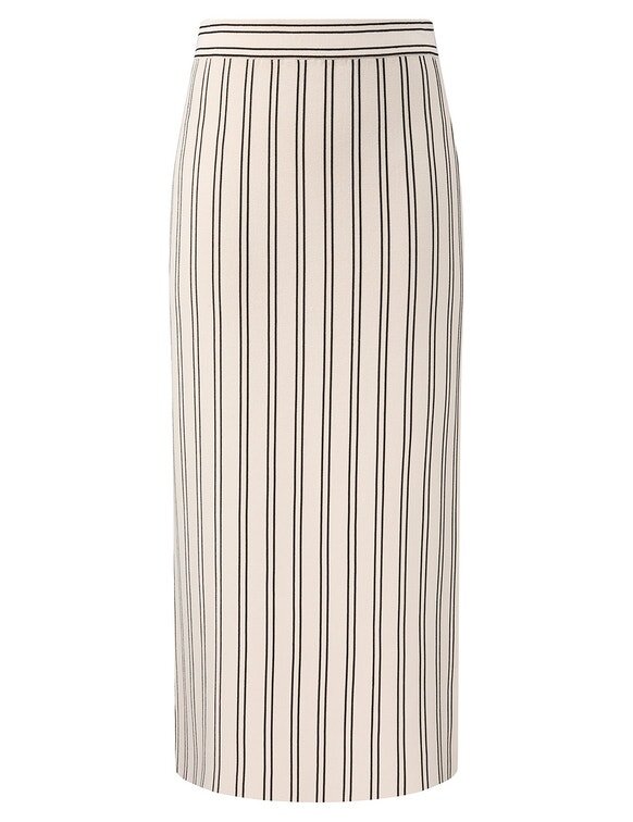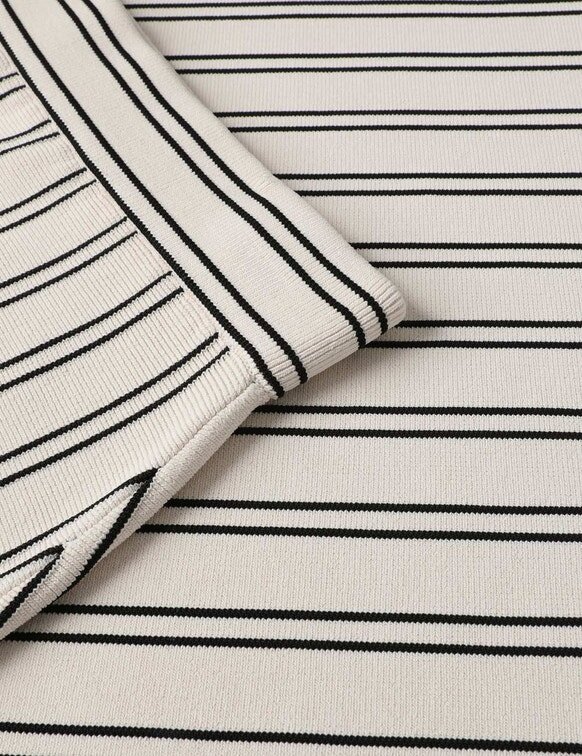 The Daylight Midi Skirt in Cream/Black from Our Resort Swim 2026 Collection. A Knit Midi Skirt Featuring a Straight Silhouette and Contrasting Stripes Throughout.