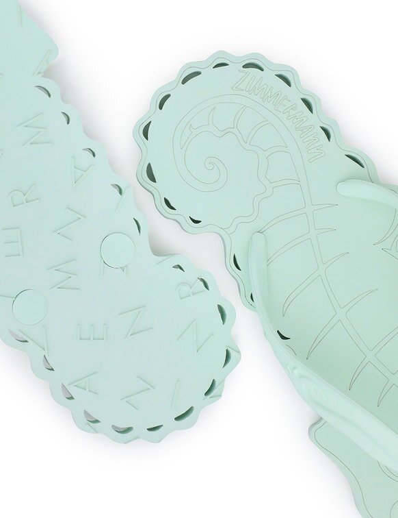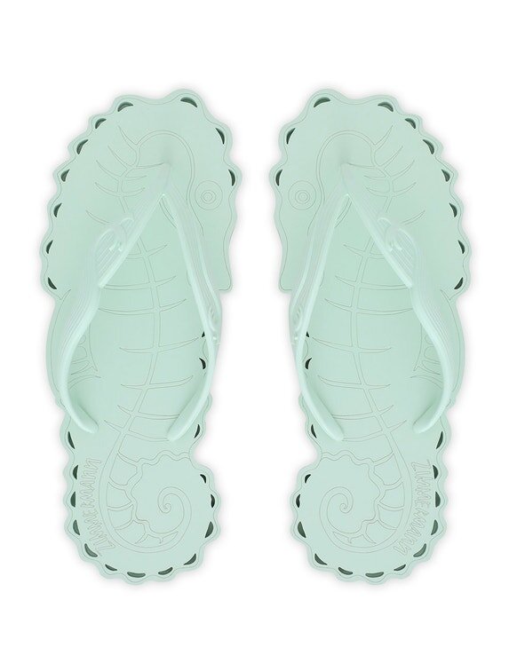 The Seafoam Thong Sandal in Seafoam from Our Summer Swim 2026 Collection. A Sculptural Thong Sandal Featuring a Round Toe and Seahorse Straps.