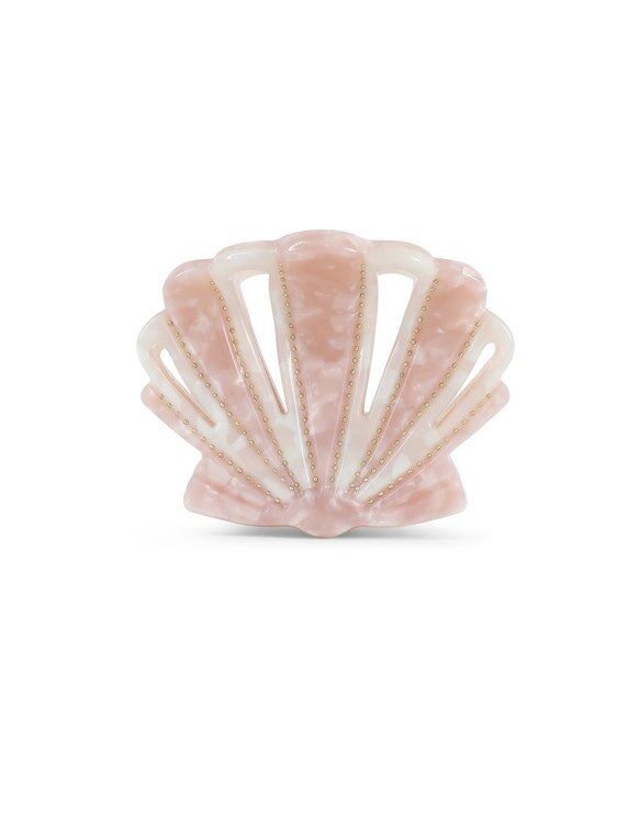 The Shell Clasp in Blush/Ivory from Our Resort Swim 2026 Collection. An Acetate Hair Clasp Featuring a Shell Design.