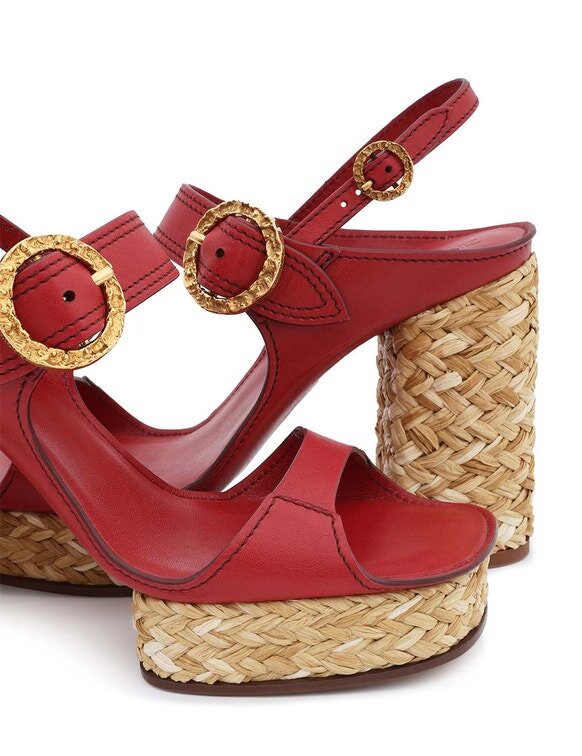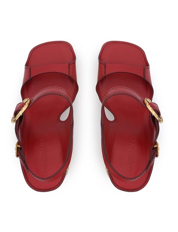 The Solena Platform 105 in Cherry from Our Summer Swim 2026 Collection. A Leather Platform Heel Featuring a 105Mm Block Heel and Gold Hardware Buckle.