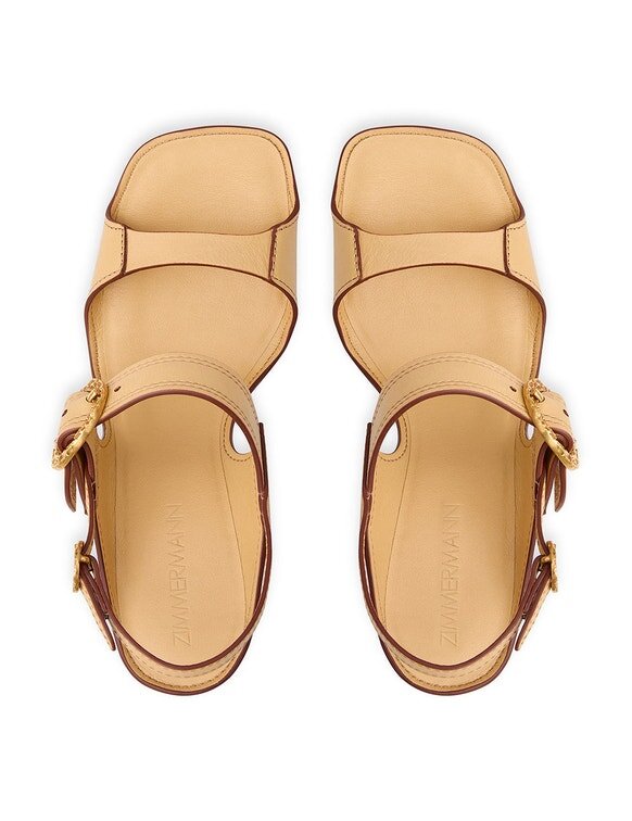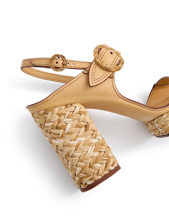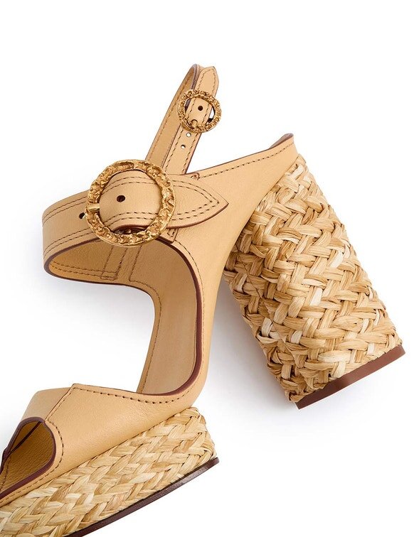The Solena Platform 105 in Clay from Our Summer Swim 2026 Collection. A Leather Platform Heel Featuring a 105Mm Block Heel and Gold Hardware Buckle.