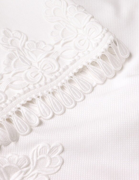 Main: 100% Cotton; Lining: 100% Cotton; Trim: 100% PolyesterDry Clean Only Code F (Hydrocarbon Only);Remove Any Detachable Trims Prior to Dry Cleaning;Cover to Protect Trim;Iron in Low Temperature with Protective Cloth;Light Steam Only;Do Not Spot CleanAlways Check the Label or Care Card for Specific Care Instructions.