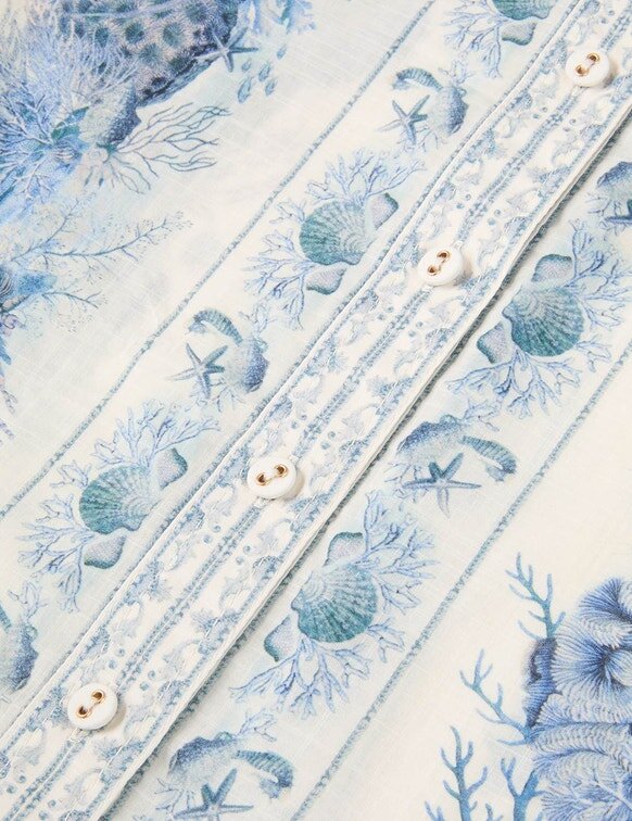 The Wanderlust Body Shirt in Blue Toile from Our Resort Swim 2026 Collection. A Cotton Shirt Featuring a Classic Collar, Long Fitted Sleeves, Finished with Buttons Down the Centre Front and on the Cuffs.